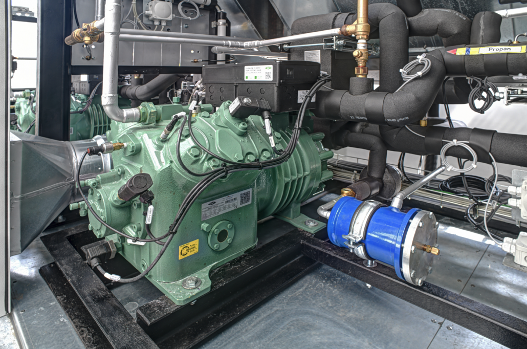 Mit dem Einsatz der ECOLINE PRO 4-Zylinder-Hubkolbenverdichter von BITZER als Herz des Propan-Flüssigkeitskühlsatzes setzt Frigotec auf einen bewährten Partner: „Wir setzen BITZER Komponenten seit unserer ersten Stunde ein. Die Verdichter laufen verlässlich und wir vertrauen auf die Qualität dahinter. Außerdem werden die Hubkolbenverdichter ganz in unserer Nähe in Schkeuditz gefertigt“, sagt Lucas Einenkel. BITZER und Frigotec arbeiteten während des gesamten Projekts eng zusammen.